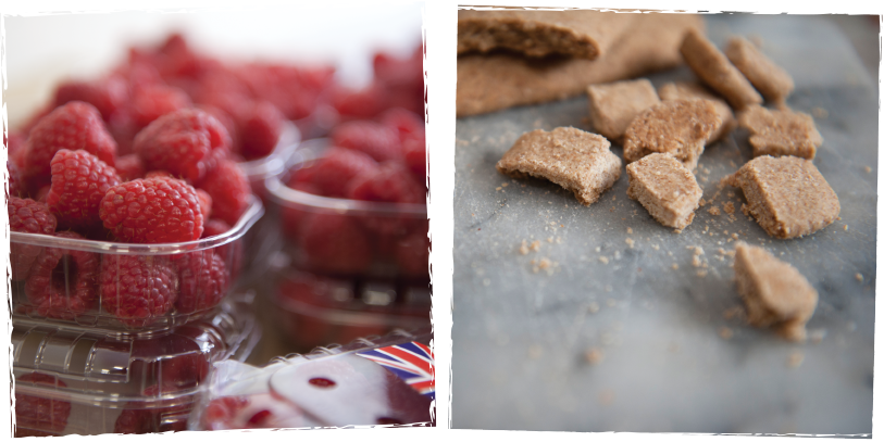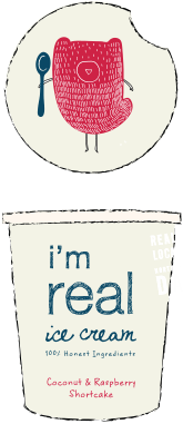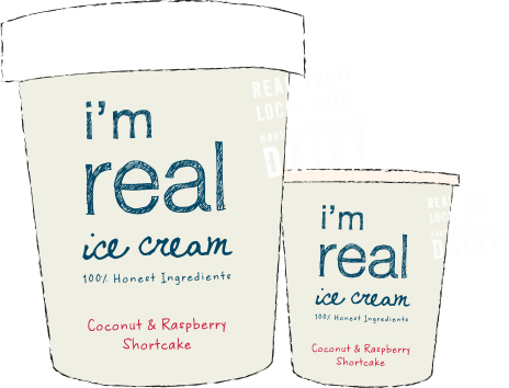 Organic coconut milk ice cream, light, smooth and studded with homemade shortcake and freshly, crushed raspberries.